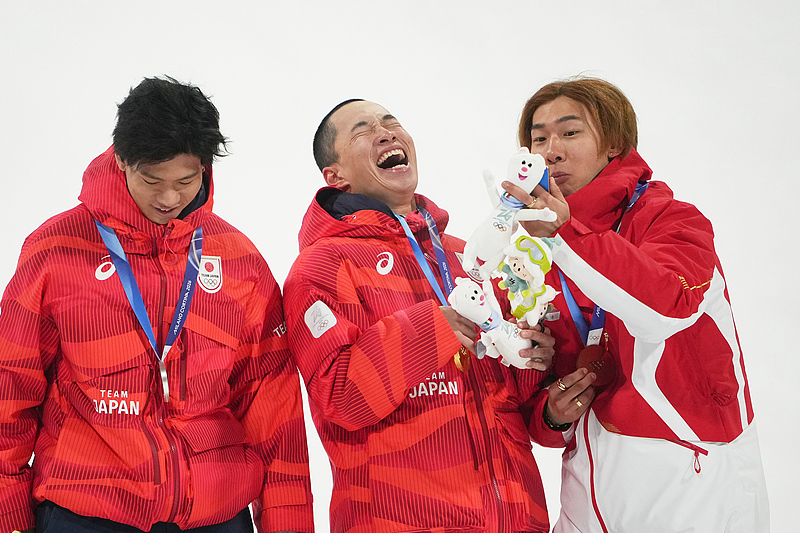 苏翊鸣在自拍合影步调逗得两位日本选手捧腹大笑