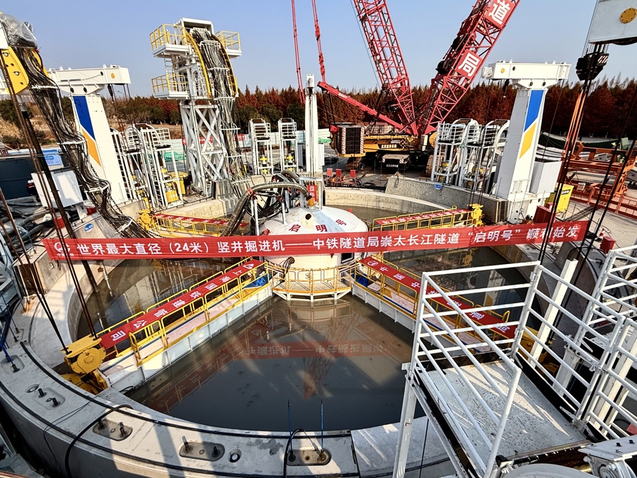 1月13日,在郑和万里远航的起锚地江苏太仓,我国自主研制的世界最大直径竖井掘进机“启明号”正式始发,投入崇太长江隧道2号竖井建设,开创了我国高速铁路竖井采用掘进机施工的新纪元,也为迎接已突破万米掘进大关的“领航号”盾构机“归队”奠定了坚实基础。